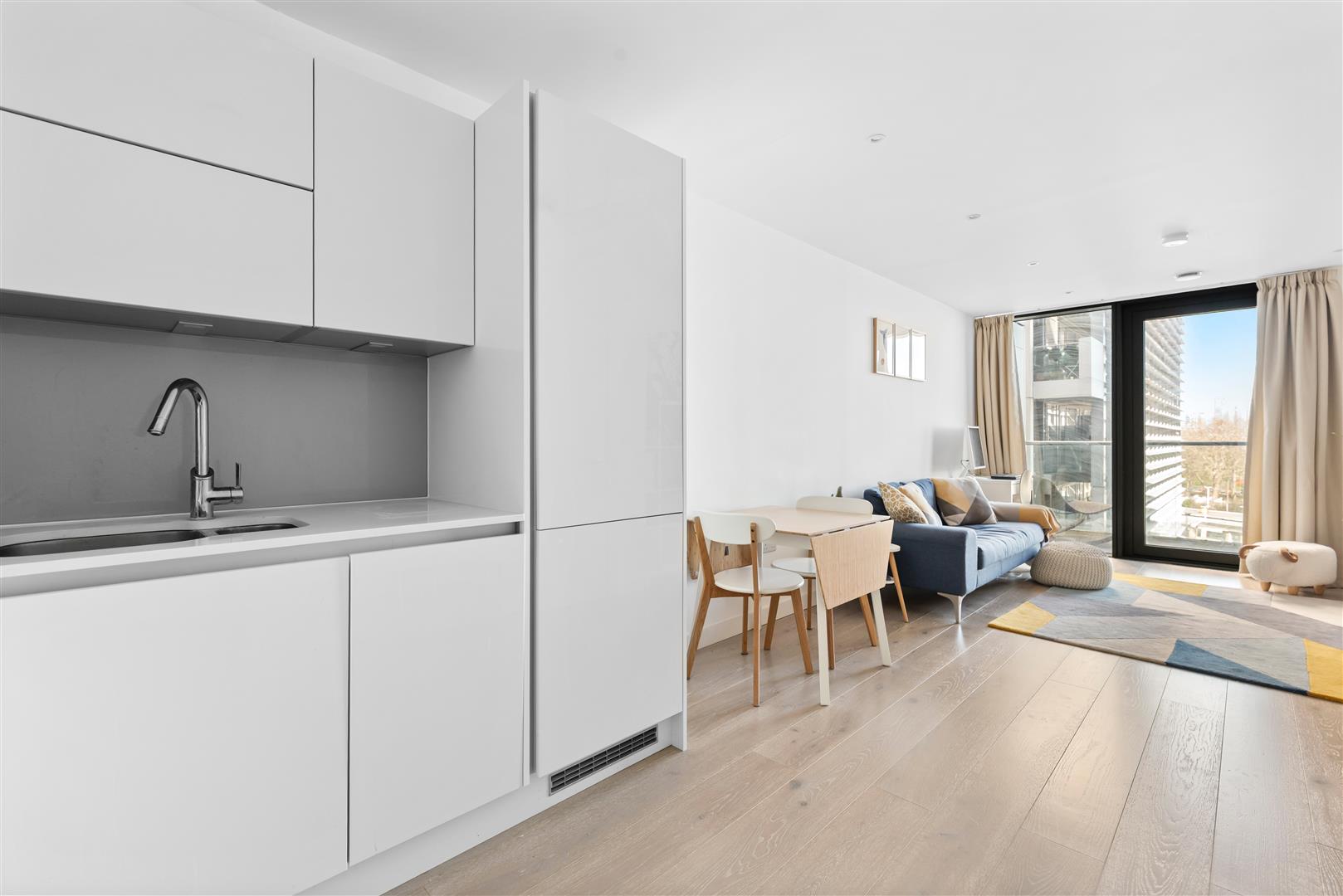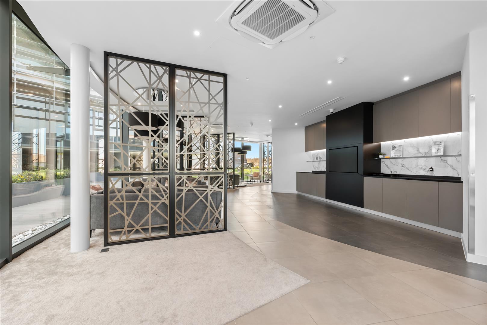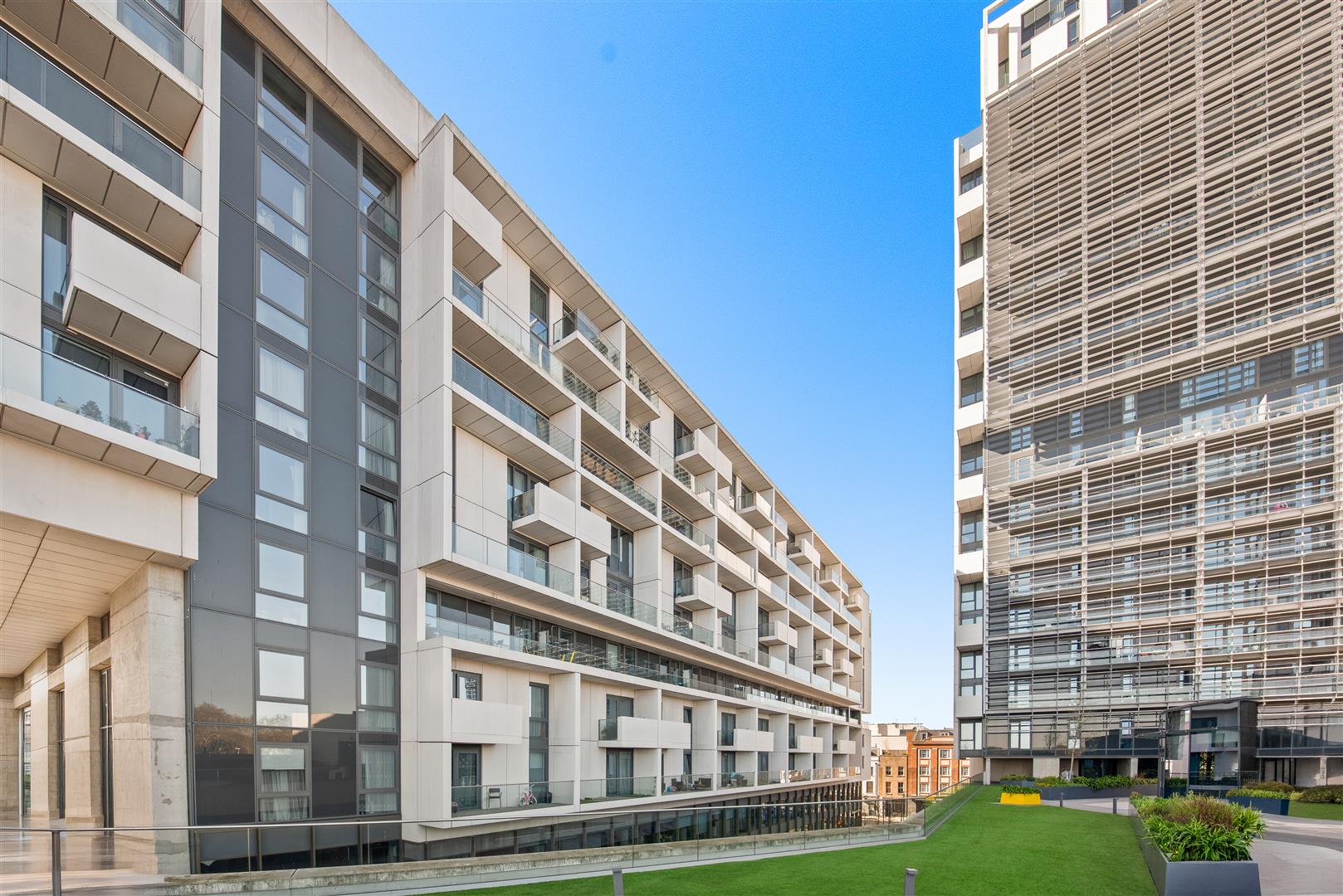 Occupying an elevated position within the City North development, this one-bedroom apartment pairs clean architectural lines with a sizeable private balcony and far-reaching views across the surrounding skyline. Designed by Benson + Forsyth Architects, the building is defined by its strong, contemporary form and thoughtful integration into the wider neighbourhood.