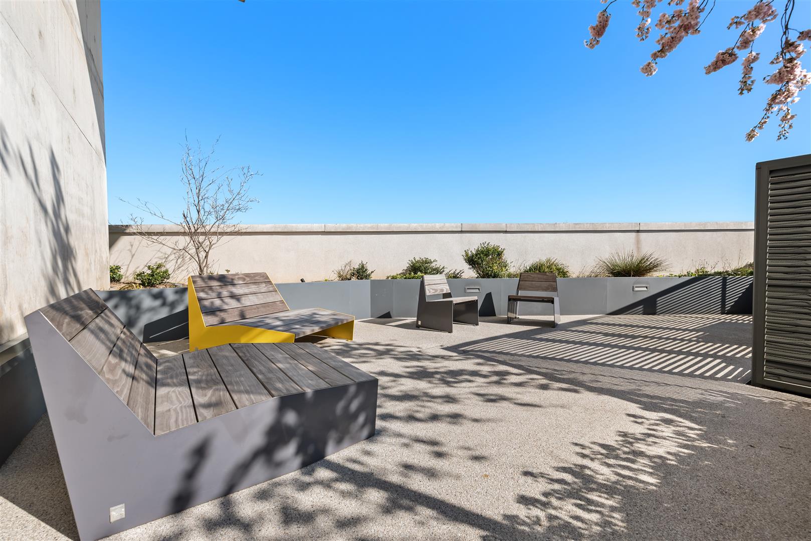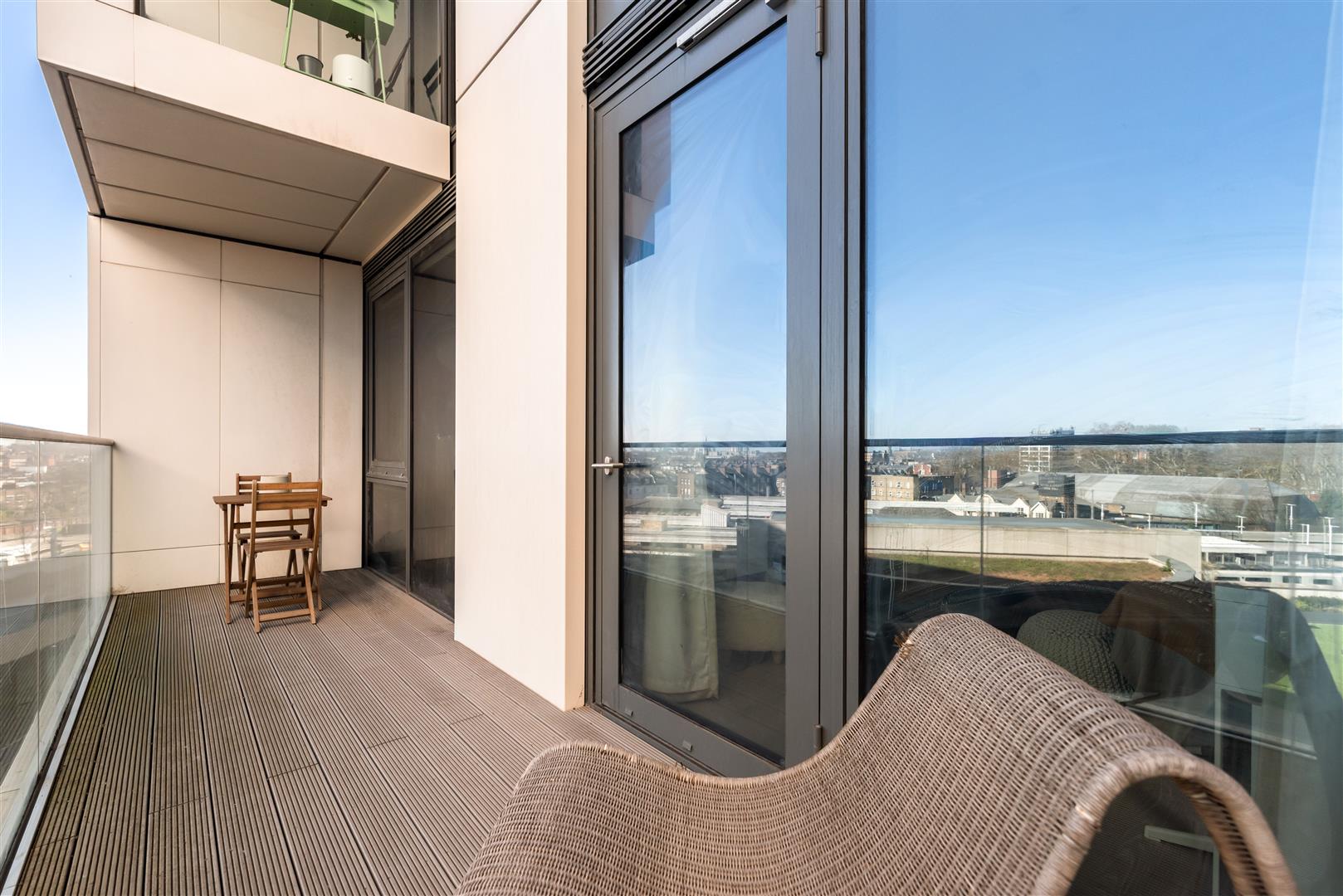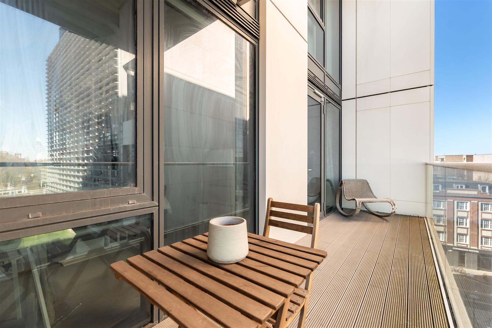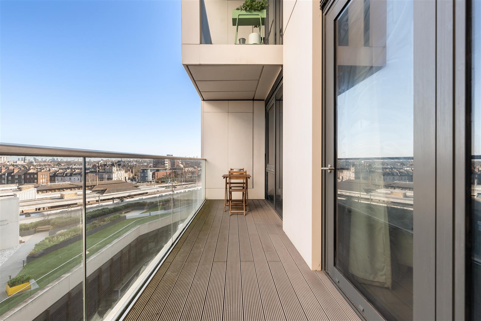 Occupying an elevated position within the City North development, this one-bedroom apartment pairs clean architectural lines with a sizeable private balcony and far-reaching views across the surrounding skyline. Designed by Benson + Forsyth Architects, the building is defined by its strong, contemporary form and thoughtful integration into the wider neighbourhood.