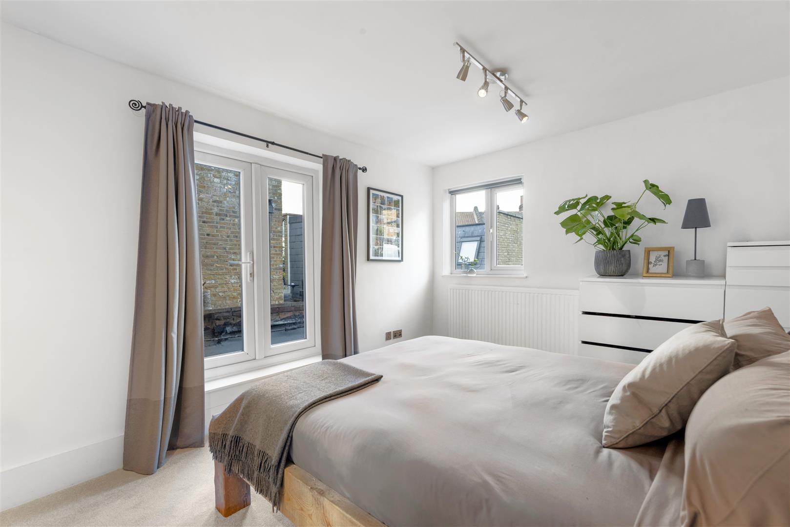 The principal bedroom sits to the rear and enjoys French doors opening to a secondary outside area, accessed from the rear (undemised). The second bedroom is currently used as a home office but works equally well as a nursery or guest room. The bathroom has been immaculately refurbished with modern fittings and a full-size bath.