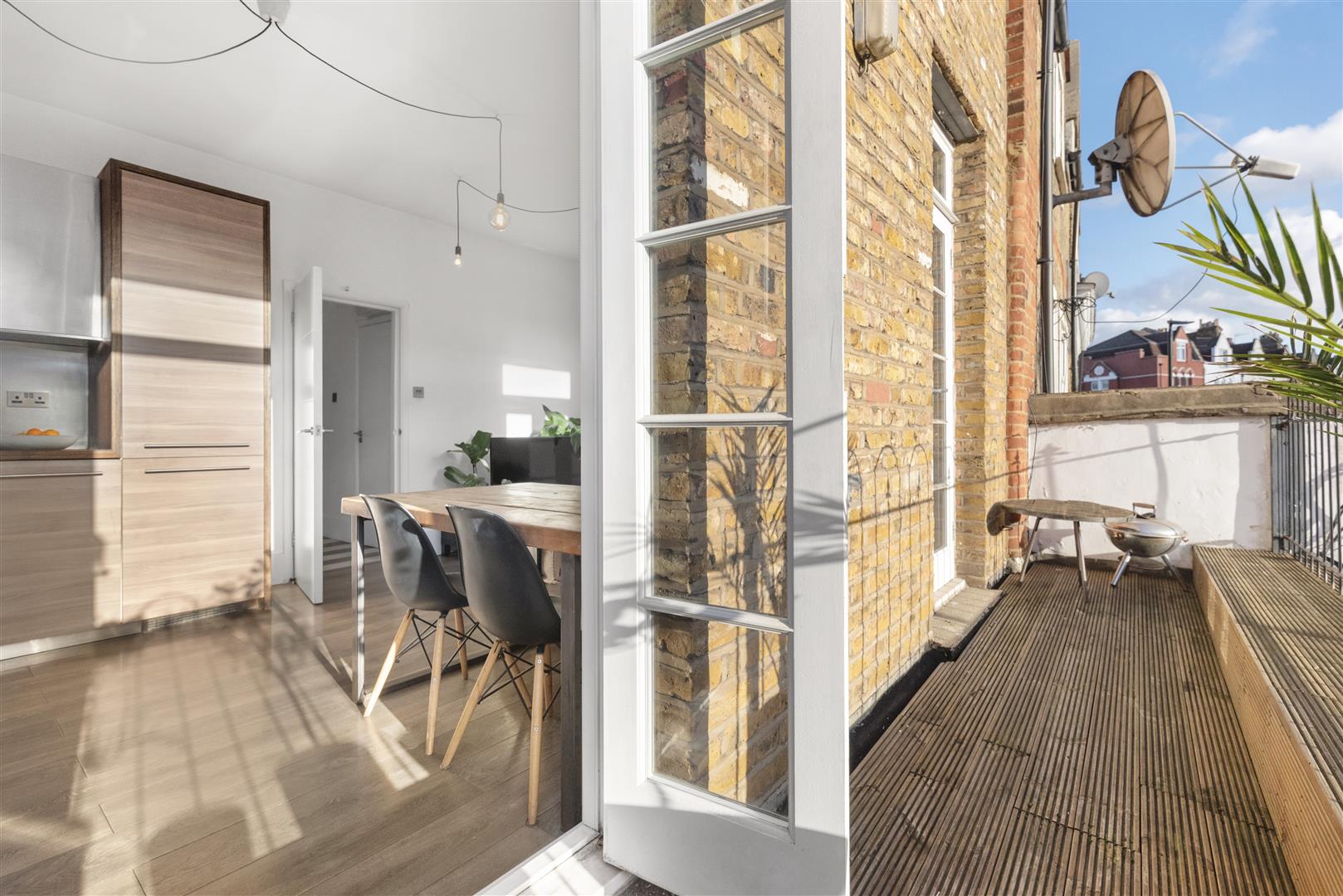 Set within an attractive Victorian parade above independent shops and eateries, the apartment features a bright open-plan reception and kitchen with French doors opening onto the balcony, making it ideal for both everyday living and entertaining. The sleek kitchen includes integrated appliances, contemporary cabinetry and excellent storage.
