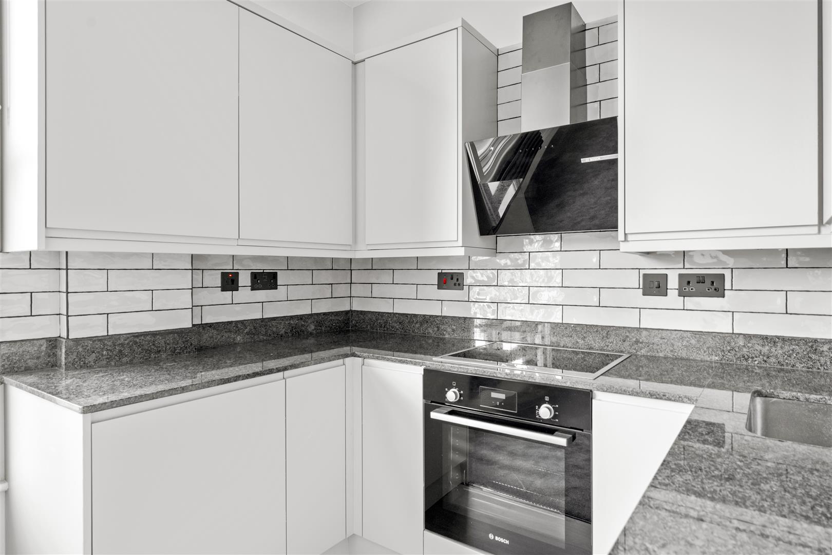The heart of the home is a generous open plan reception, dining and kitchen space, finished to a high standard and flooded with natural light from large sash windows. The sleek, modern kitchen is fitted with clean white cabinetry, stone worktops, integrated appliances and stylish tiled splashbacks, creating a practical yet elegant space that works equally well for everyday living and entertaining.