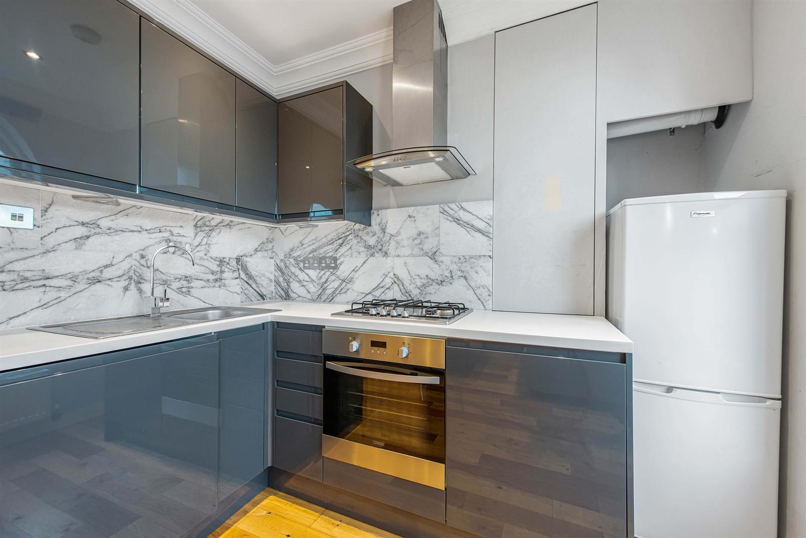 To the front of the property, the double bedroom is calm and well proportioned, with warm neutral tones, laminate flooring and a discreet built-in wardrobe. There is space for a large bed and additional furniture, making the room both practical and comfortable. A smart, low-maintenance home offering excellent light, strong transport connections and a vibrant North London setting – ideal for first-time buyers, professionals or investors alike.