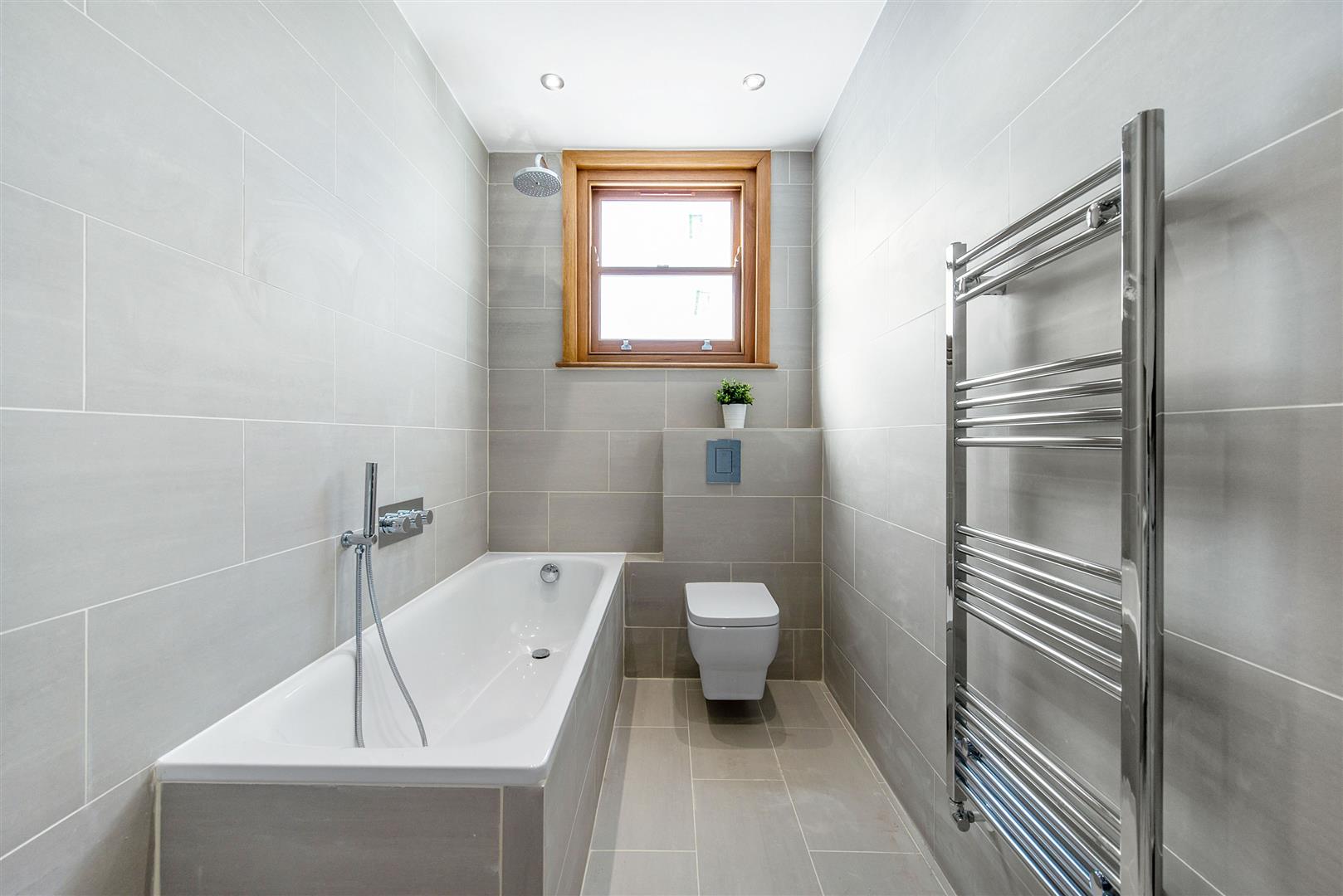 Inside awaits a blank canvas via white walls and laminate flooring, welcoming you into your first floor abode. The double bedroom sits to your right upon entry, illuminated by recessed spot lighting and large window looking out over a quintessential London style brick street below. Here you’ll find space for a king size bed, dressing table / office space and large wardrobe.