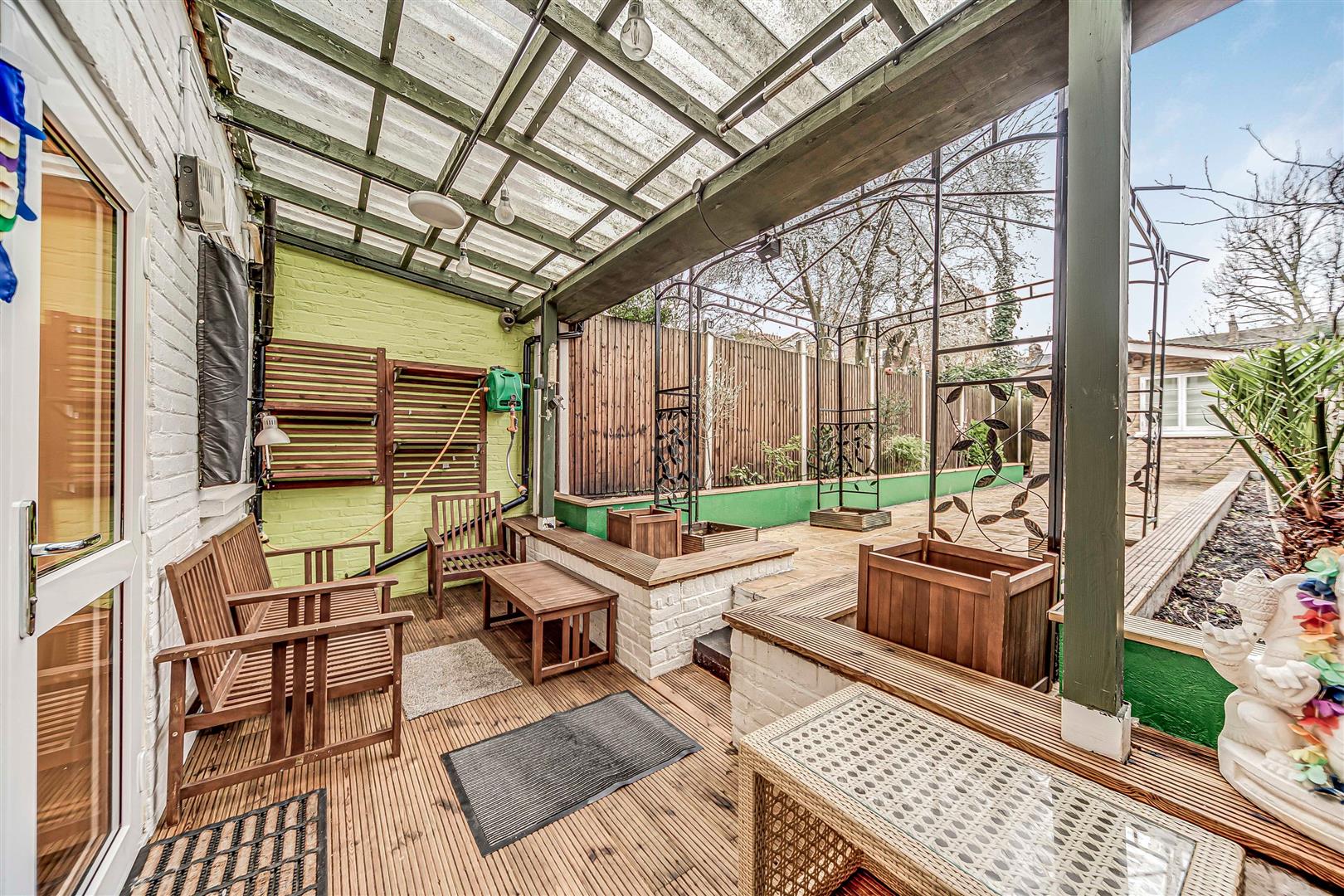 Adjacent to the kitchen, the reception room beckons with its inviting ambiance, featuring a charming fire surround and alcove shelving. Whether you’re entertaining guests or enjoying a quiet evening in, this versatile space offers ample room for both lounging and dining. With garden views and direct access to the outdoor oasis, you can seamlessly extend your living space into the tranquil garden.